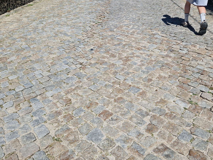 Distance travelled today: 15 miles on foot Day 2: Vairão to Pedra Furada If yesterday was defined by 'yellow arrows', then today has been defined by cobble stones: cobbled roads, cobbled pavements, interrupted only by the occasional stretch of dusty footpath littered with rocks and stones - behaving just like cobbles. Now cobbles may look pretty, but there is a reason why Edgar Hooley invented tarmac in the early 20th century - they have a terrible impact on vehicular suspens